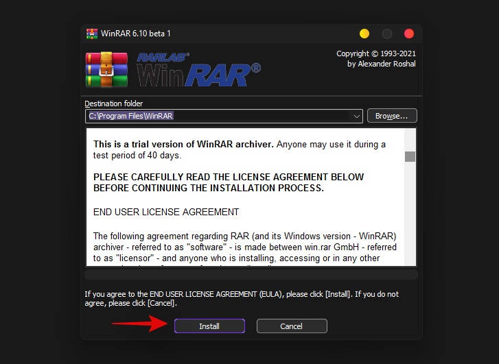 双击安装文件运行安装程序并在您的 PC 上安装 WinRAR。