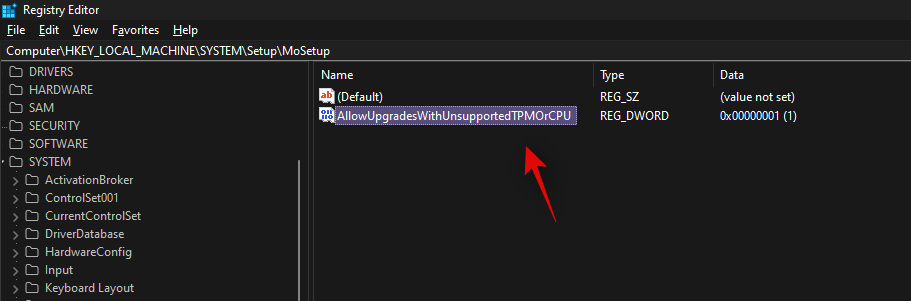 手动编辑“AllowUpgradesWithUnsupportedTPMorCPU”值会绕过在 Windows 11 安装期间执行的兼容性检查。即使您没有 TPM 或安全启动,启用该值也允许设置升级您的系统。