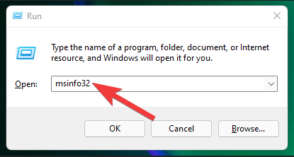 首先,让我们看看PC是否支持安全启动。为此,请按Win + R打开 RUN 框,键入 msinfo32 并按 Enter。