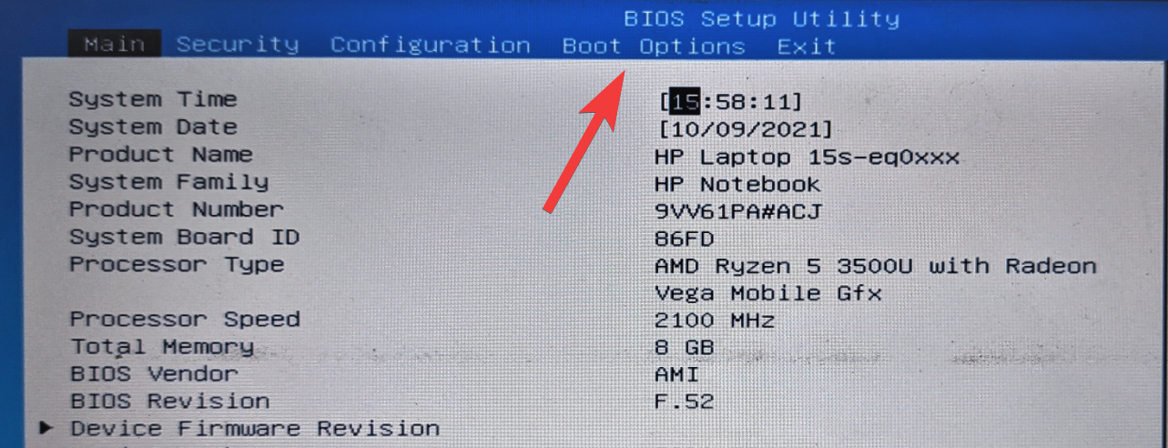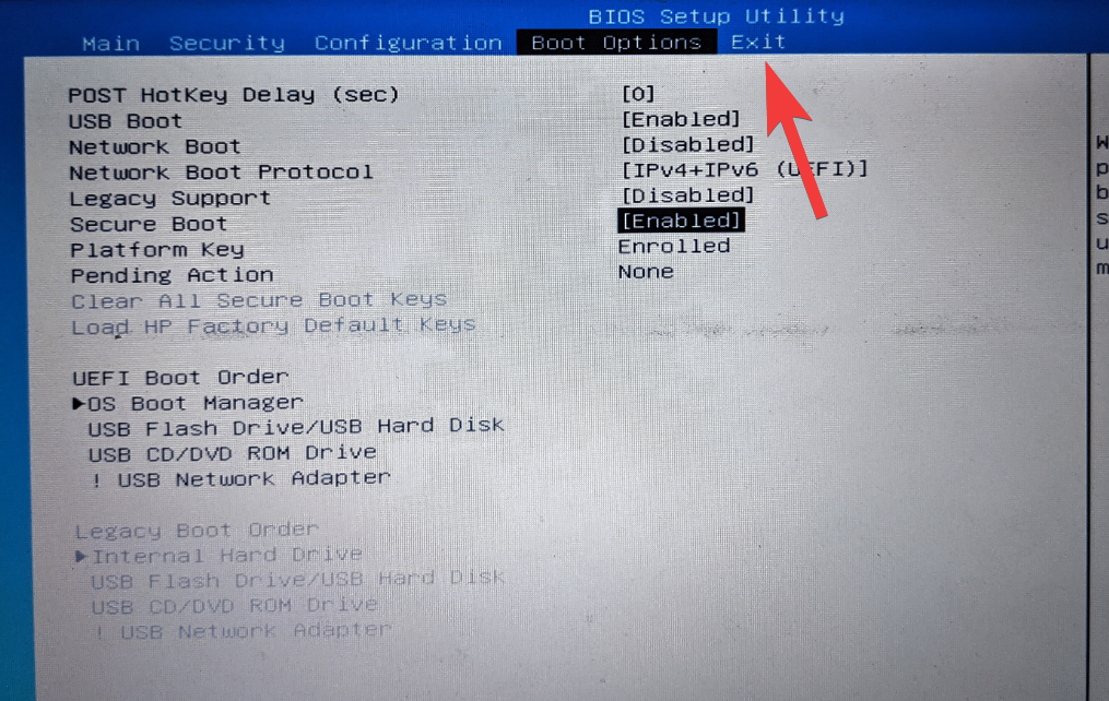 启动设置打开后,搜索“安全启动”选项。在大多数情况下,它位于“启动选项”选项卡或“安全”选项卡下,并且会因您的 PC 而异。使用箭头键进入该选项卡。