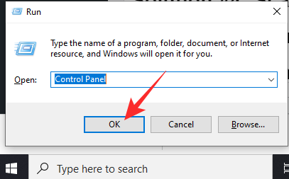 点击Windows + R以调出 Run。现在,键入“控制面板”并按 Enter。