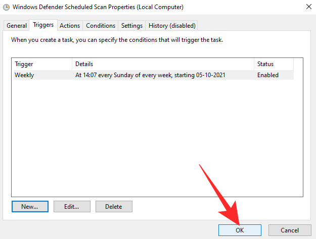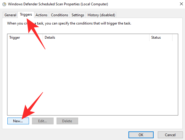 然后,转到“触发器”选项卡并单击“新建”按钮。