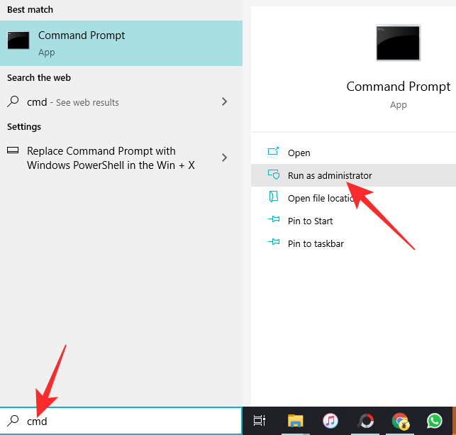 与其他所有 Windows 组件一样,Windows Defender 可能会受到恶意更新的影响。因此,如果您怀疑有问题,请不要犹豫清理 Windows Defender 的更新。单击屏幕左下角的搜索栏并查找“cmd”。当命令提示符弹出时,单击“以管理员身份运行”。