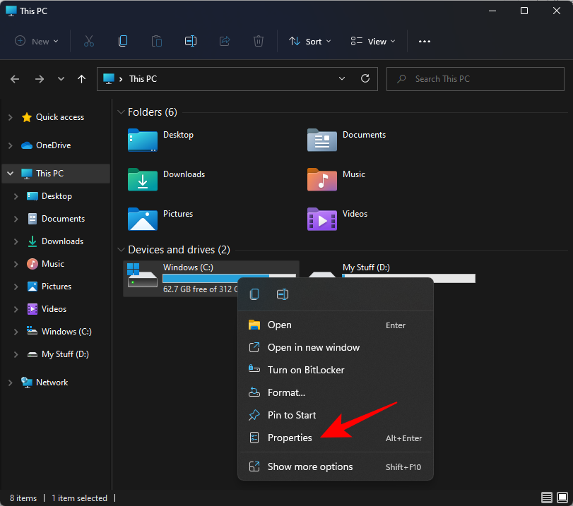 按Win + E打开文件资源管理器,然后单击左窗格中的我的电脑。右键单击要检查的驱动器并选择Properties。