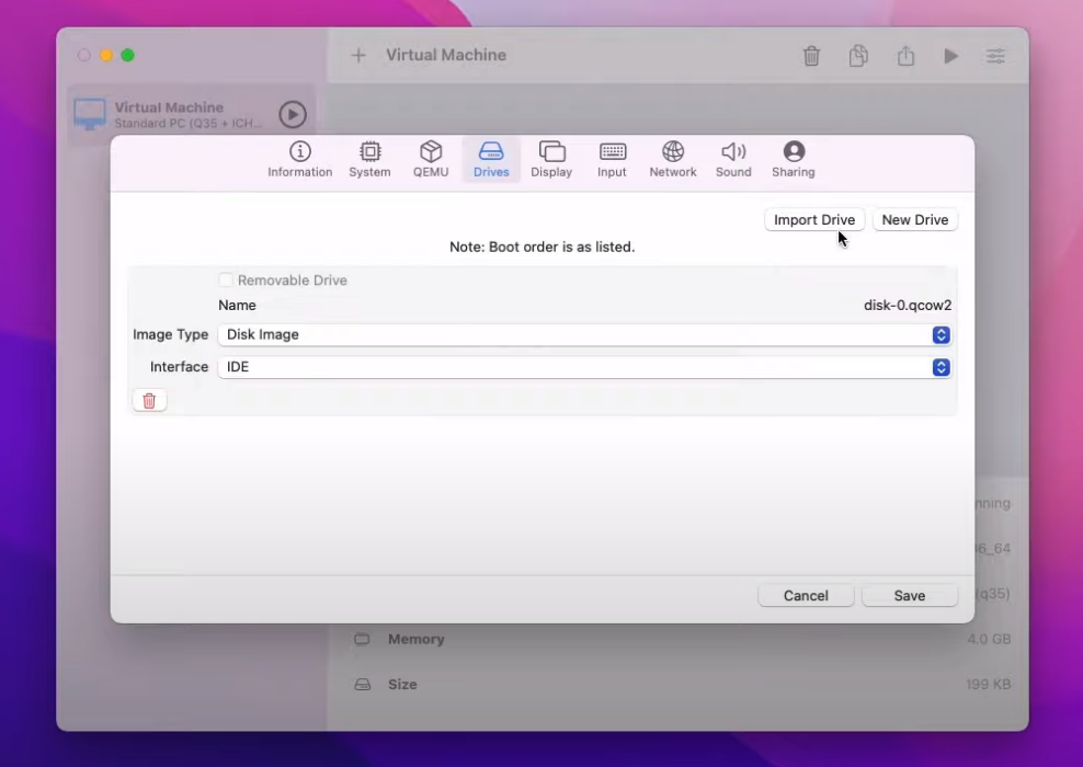 11. 单击Import Drive,选择您下载的 Windows 11 ISO,然后单击Save。