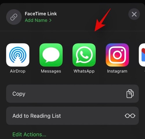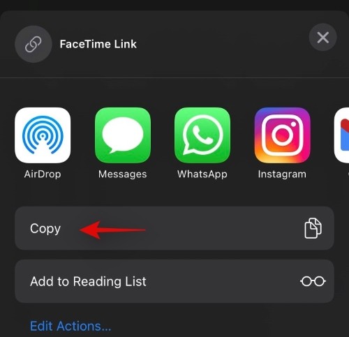 如果您正在通话中并想分享相同的链接,请点击顶部的“Facetime”。