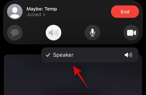 如果您希望通过扬声器或耳机传送音频,您可以在 iOS 或 iPadOS 设备上切换输出设备。您也可以使用它在 Airpods 和手机扬声器之间切换。点击顶部通话屏幕上的“扬声器/耳机/Airpods”图标。