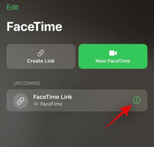 您现在可以返回 Facetime 应用程序并点击新创建的“Facetime 链接”旁边的“i”。