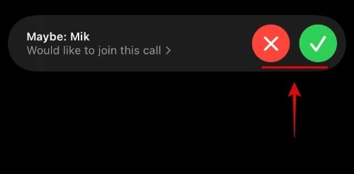 加入通话后,请等待接收请求。点击顶部的“复选标记”以批准请求。点击“X”拒绝一个。