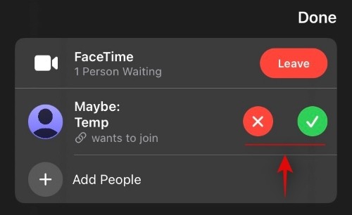 然后,您可以点击“复选标记”以批准请求或点击“X”以拒绝它。但是,如果您错过了传入的加入请求,则可以点击顶部的“Facetime”。您现在将在屏幕上看到所有待处理请求的列表。您现在可以自行决定批准或拒绝它们。