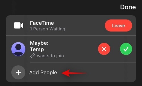 如果您碰巧错过了某个请求,请点按屏幕以显示叠加层,然后点按顶部的“Facetime”。您还应该看到一个待处理的请求指示符,例如“N Person Waiting”,其中 N 是等待加入请求获得批准的人数。