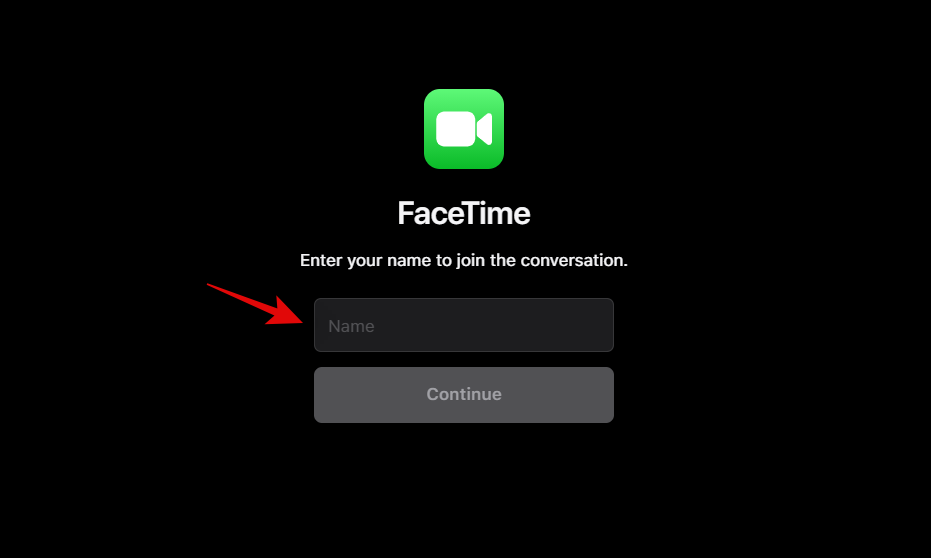确保您已收到加入通话所需的 Facetime 链接。找到后,单击链接在浏览器中打开它。现在将要求您输入您的姓名。这将是您在通话期间使用的显示名称,它将显示在您的视频预览旁边。
