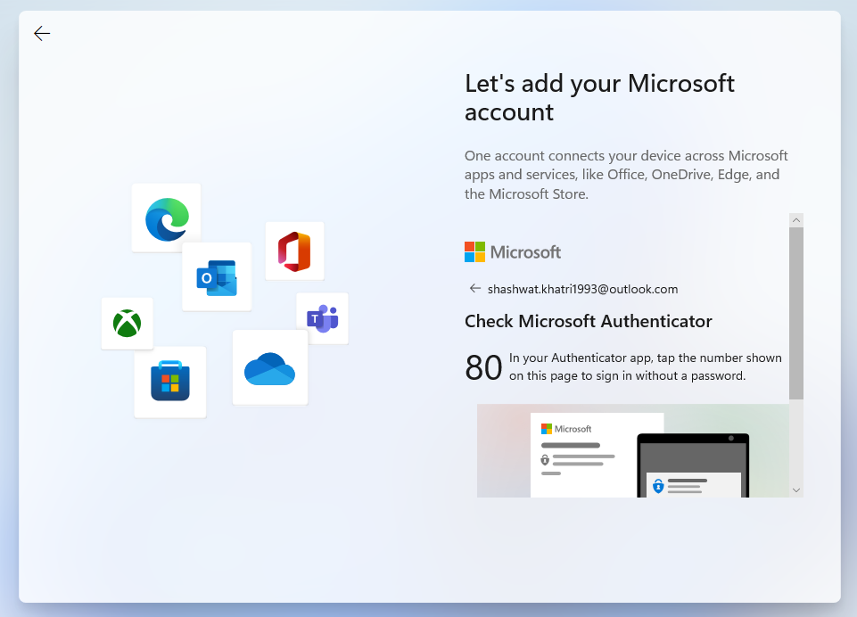 如果您要安装 Windows 11 的全新副本,则可以直接从 Windows 11 OOBE 本身添加您的 Microsoft 帐户。为此,请按照 OOBE 说明进行操作,当您进入“让我们添加您的 Microsoft 帐户”时,输入您的 Microsoft 帐户,然后单击“ 下一步”。