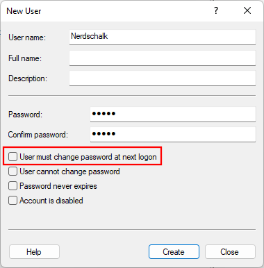 如果您想永久保留此密码设置,请取消选中“用户必须在下次登录时更改密码”框 。