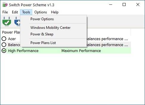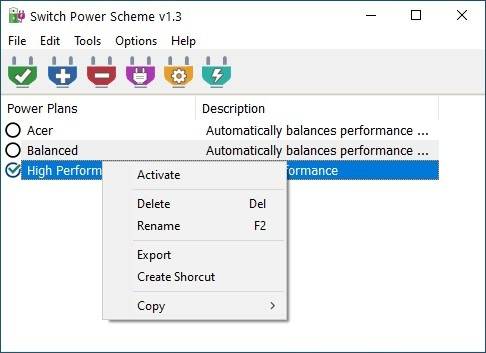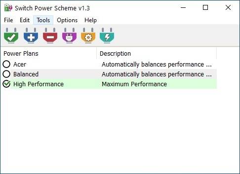 警告:程序在我第一次使用时删除了高性能计划。我强烈建议您在开始使用 Switch Power Scheme 之前使用导出选项来备份您的设置。