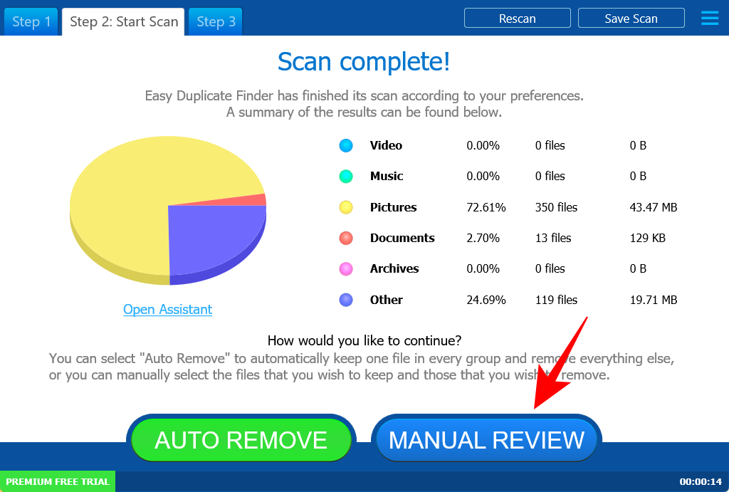 这是另一个程序,它只给你一周的试用期,之后你必须购买它才能继续使用。但作为一次性重复文件清理器,免费版本只需使用一些类即可完成工作。