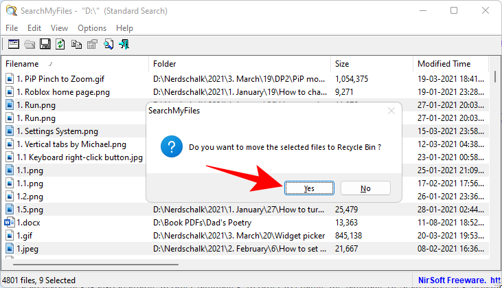 现在选择是要将文件移动到回收站还是永久删除它们。然后单击是。