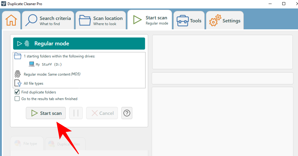 如果您没有时间配置设置,Easy选项将为您处理一切。或者,您可以指定要搜索的内容、要排除的内容以及与重复文件搜索相关的所有内容。为此,请单击Advanced。
