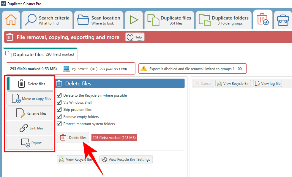 然后单击“删除所选文件”旁边的箭头并选择您想要删除它们的方式(推荐“到回收站”)。