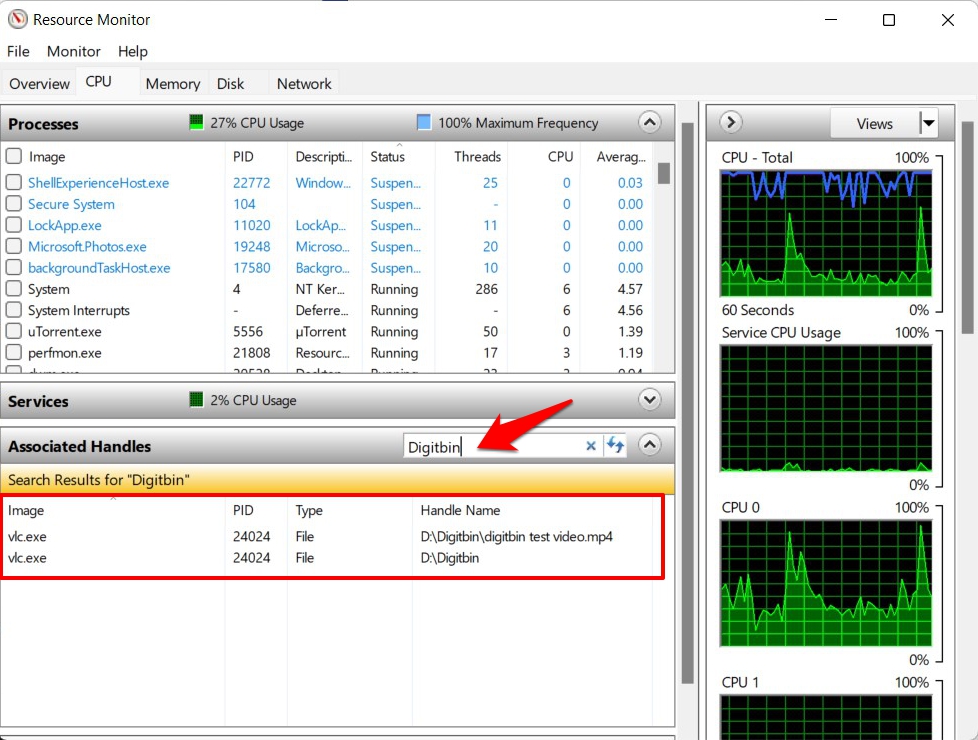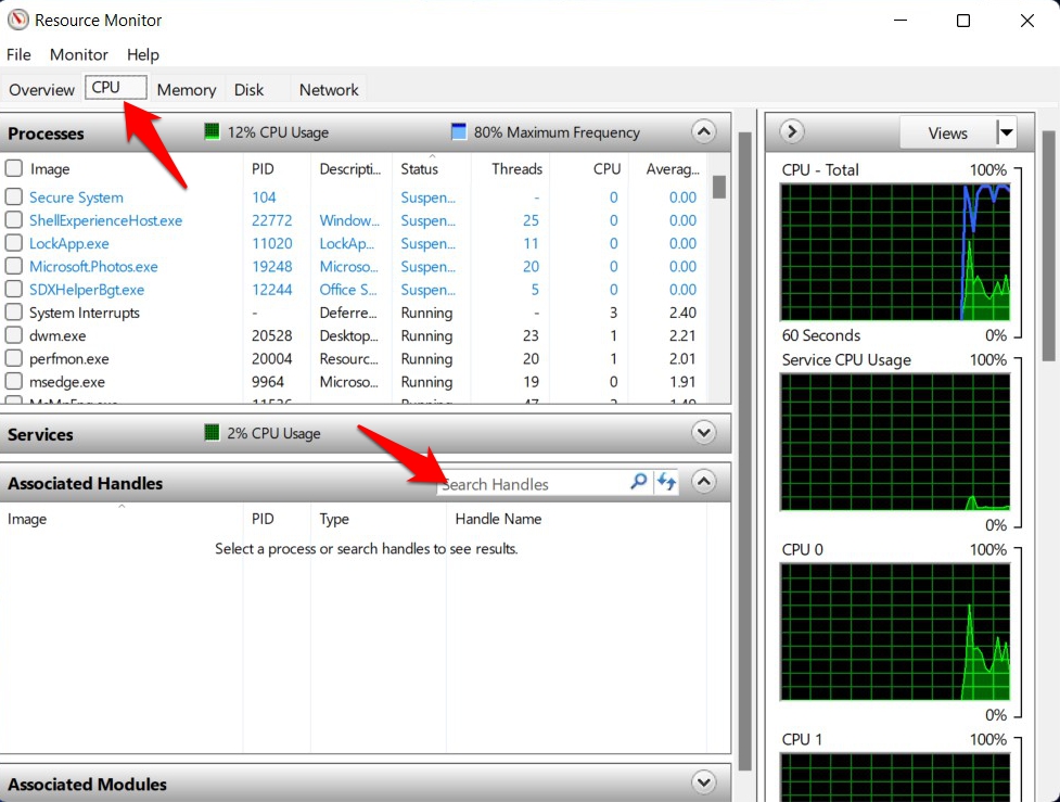 - 资源监视器现在将执行扫描,并让您知道当前正在使用您的文件或文件夹的应用程序或程序。