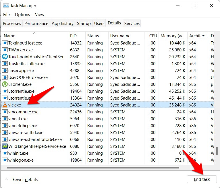 - 只需转到任务管理器的详细信息选项卡,您现在应该能够直接找到资源监视器中显示的进程名称。