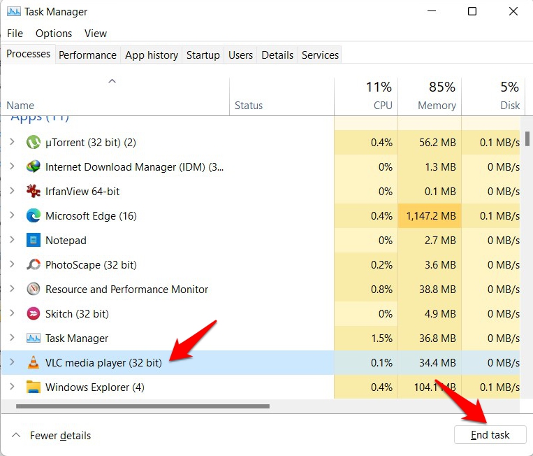 - 因此,选择该进程并单击位于右下角的“结束任务”按钮。
