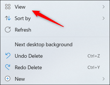 首先,右键单击桌面上的任意位置。将出现一个上下文菜单。将光标悬停在菜单顶部的“查看”选项上。