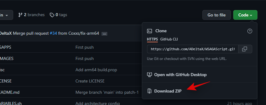 打开顶部的 WSGA 脚本链接,然后将其作为 .zip 文件下载到本地存储。