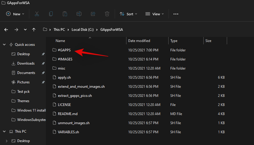 复制后,在启动驱动器上创建另一个名为“GAppsForWSA”的新文件夹。