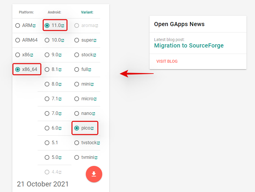按Ctrl + S键盘上的以保存更改。我们现在将为您的 WSA 安装下载 GApps。访问顶部的 OpenGApps 链接并选择下面给出的以下选项。
