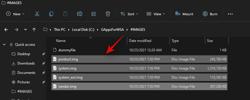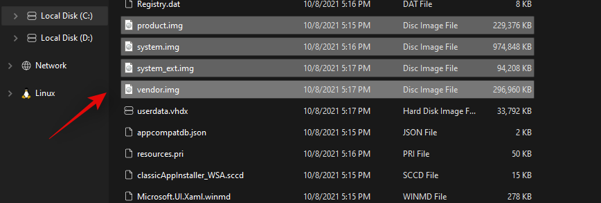 现在返回到您的启动驱动器并打开“WindowsSubsystemForAndroid”。复制以下4个文件。