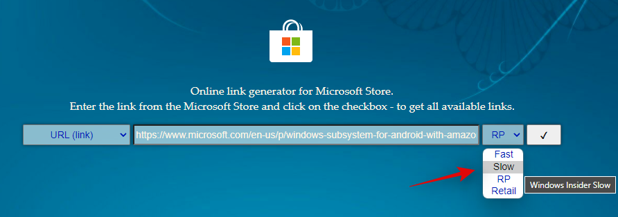 访问上面的 WSA 链接,然后将下面或上面给出的以下链接复制并粘贴到文本框中。