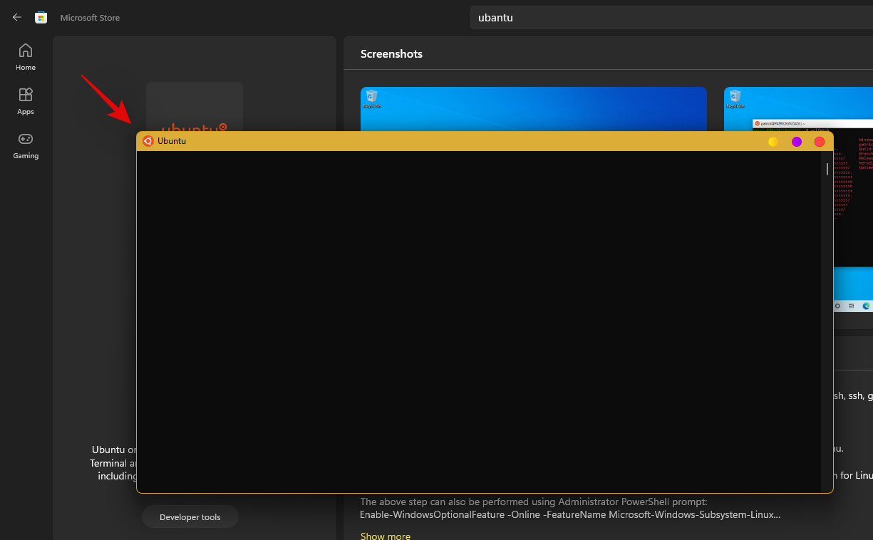 我们现在将安装一个发行版,它将在此设置过程中为我们提供帮助。我们建议您使用 Microsoft Store 上提供的 Ubuntu,因为它可以轻松下载并从您的系统中删除。使用下面的链接在 Microsoft Store 中访问和下载 Ubuntu。
