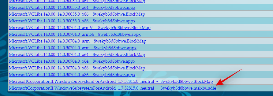 处理完成后,所有链接的下载文件现在都将显示在您的屏幕上。滚动到底部并单击底部的 .msix 包并将其下载到本地存储中的一个方便位置。