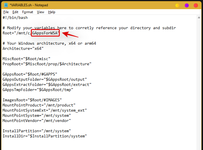 存档内容后,右键单击“VARIABLEs.sh”并使用记事本打开它。