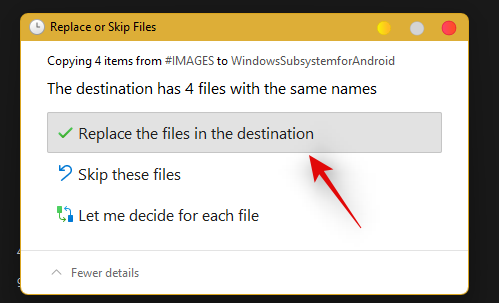 现在导航到启动驱动器上的“WindowsSubsystemForAndroid”文件夹并将所有复制的图像粘贴到同一位置。出现提示时选择替换文件。