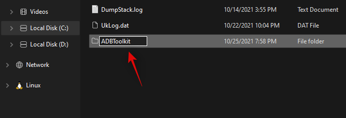 现在在启动驱动器上创建一个新文件夹并将其命名为“ADBToolkit”。