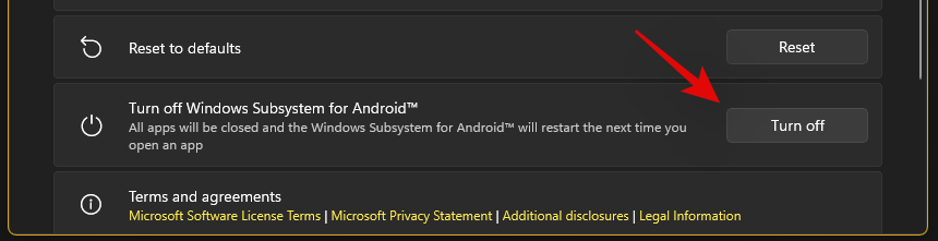 登录后,关闭 Play 商店。我们现在需要恢复您的原始内核。打开适用于 Android 的 Windows 子系统窗口,然后单击“关闭”。