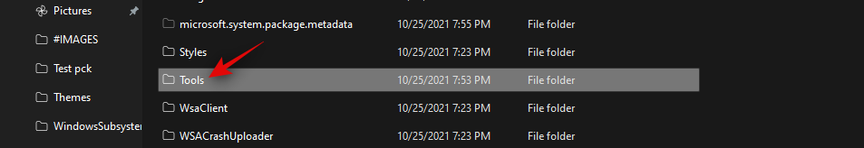 子系统现在将停止在您 PC 的后台运行。导航到启动驱动器上的“WindowsSubsystemForAndroid”文件夹并打开“工具”文件夹。