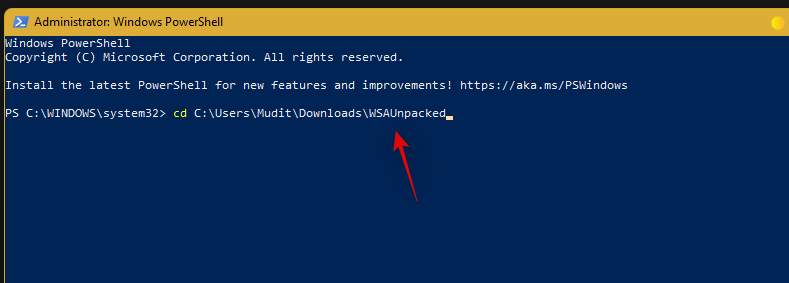 现在将上面链接的 WSA 下载到本地存储中一个方便的位置。将文件解压缩到名为“WSAUnpacked”的新文件夹中。单击“WSAUnpacked”文件夹中的地址栏,然后将路径复制到剪贴板。