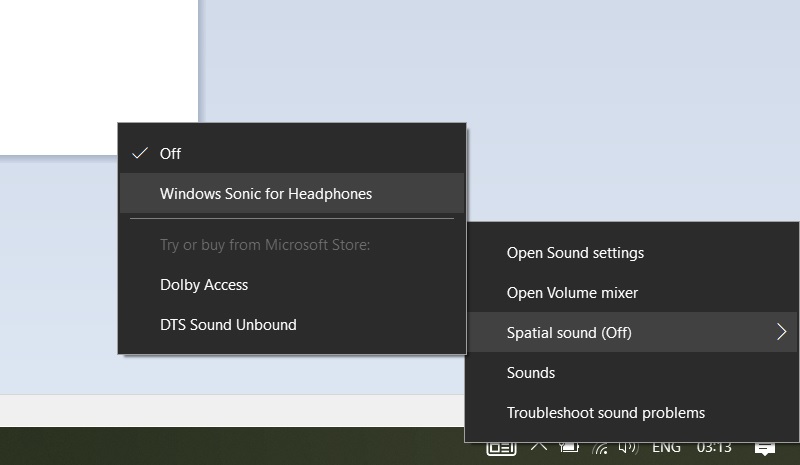 同时,您可以尝试潜在的解决方法来解决这些音频问题。例如,您可以通过右键单击通知区域中的音量图标来启用空间声音设置。
