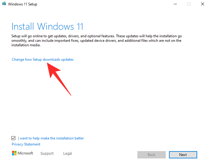 接下来,单击“更改安装程序下载更新的方式”超链接。