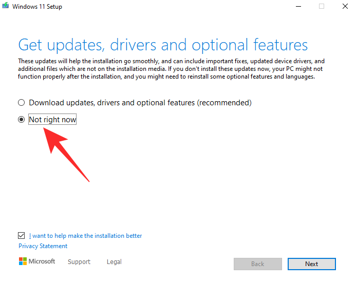 在下一页上,选择“不是现在”。