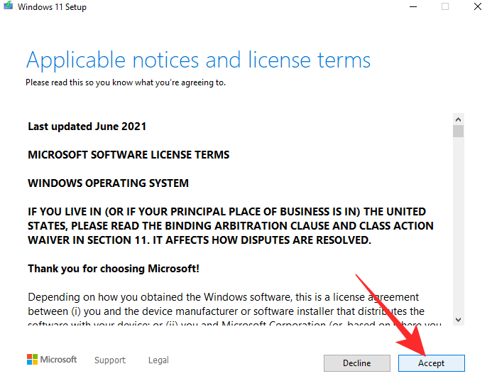 安装程序将跳过验证并直接带您进行许可和验证。点击“接受”开始。