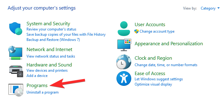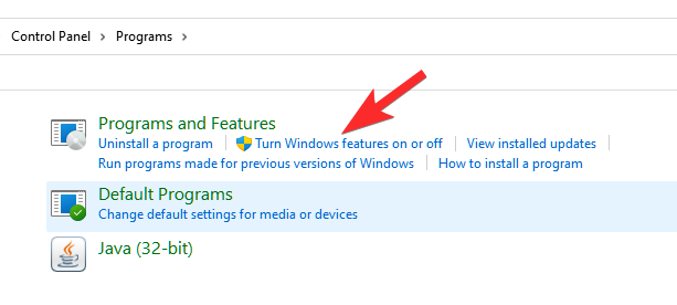 现在,单击“程序和功能”下的“打开或关闭 Windows 功能”。