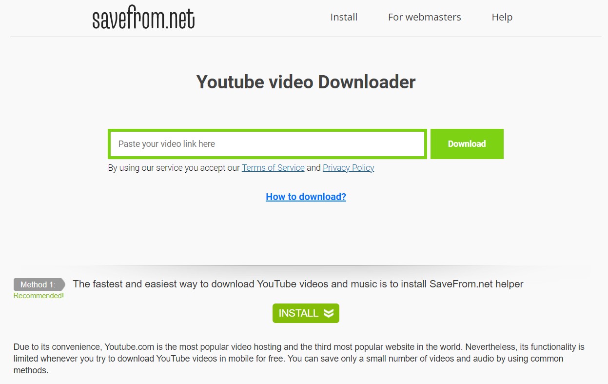最重要的是,Savefrom.net 是一个免费使用的平台。因此,您所要做的就是将视频链接复制粘贴到其网站上,然后单击下载按钮。