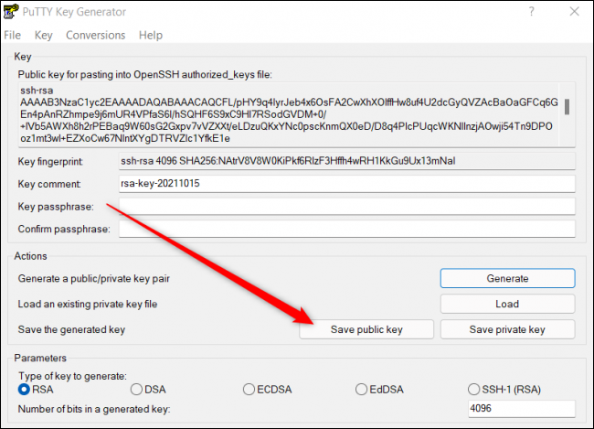 完成后,单击“保存公钥”以保存您的公钥,并将其保存在您想要的位置,名称为“id_rsa.pub”或“id_ed25519.pub”,具体取决于您在前面的步骤中选择了 RSA 还是 Ed25519。