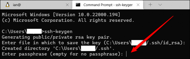 无论您使用命令提示符还是 Windows 终端,请键入ssh-keygen并按 Enter。这将自动生成 SSH 密钥。在我们在 Windows 11 上的测试中,它创建了一个 2048 位的 RSA 密钥。如果您想使用不同的算法(例如GitHub 推荐 Ed25519 ),那么您可以输入ssh-keygen -t ed25519.