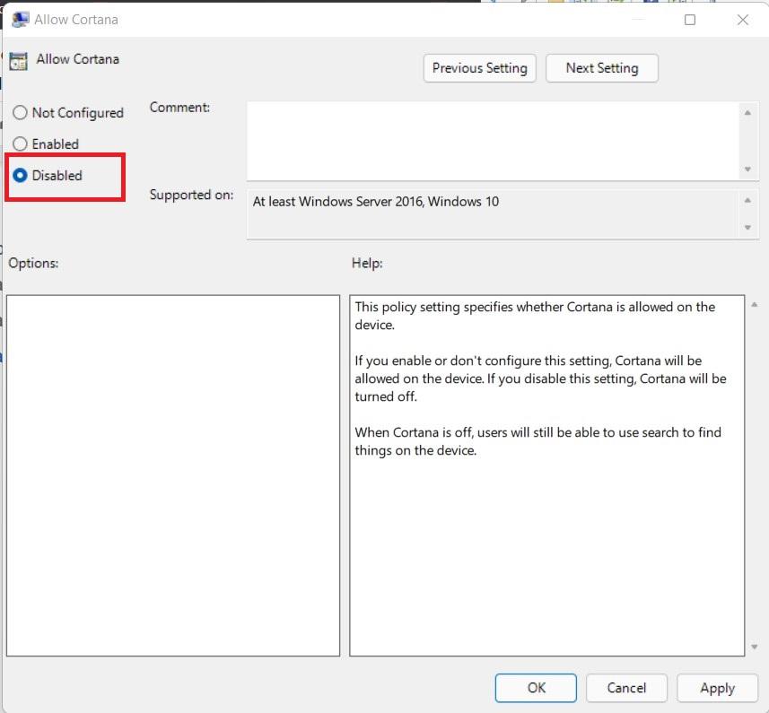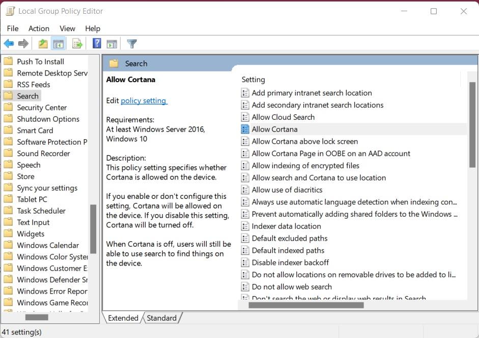 您还可以使用组策略编辑器禁用 Cortana。您可以查看我们的指南,了解在 Windows 11 中打开组策略编辑器的不同方法。与另一个过程相比,这是一个漫长的过程,但如果您希望通过组策略编辑器禁用 Cortana,这就是您需要做的。请按照以下步骤操作: