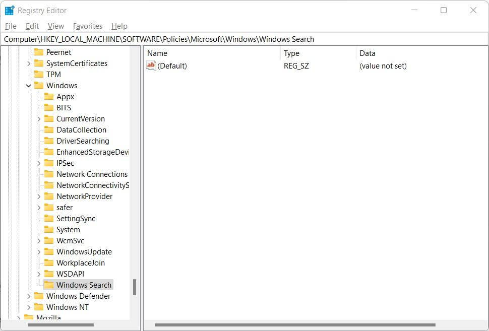 Computer\HKEY_LOCAL_MACHINE\SOFTWARE\Policies\Microsoft\Windows\Windows Search